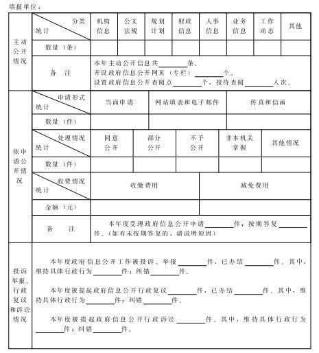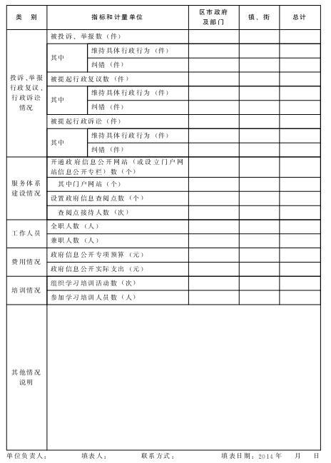 政府信息公开工作情况统计表 (市政府各部门和有关单位通过政务公开信息管理系统填报)