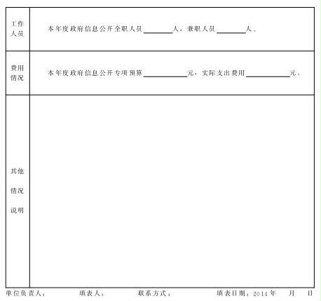 1.主动公开政府信息数(条):指按照《条例》要求,予以主动公开,并已编入本部门规范的政府信息公开目录的信息数(通过政府信息公开网站或部门网站信息公开专栏发布)。其中,部门机构信息一般整合为1条,业务信息主要包括行政执法、审批、办事、民生和社会管理等信息。上述有关信息如在2012年之前发布但本年度未更新的,不应统计在内。 2.依申请公开收缴费用:指依申请向公民、法人和其他组织提供政府信息过程中实际收取的有关费用总额。其中,检索、复制、邮寄等费用按照山东省政府信息公开收费标准执行。 3.被投诉、举报(件):指公民、法人和其他组织针对政府信息公开事务向本部门或有关部门提出与本部门相关的投诉、举报数量,由被举报单位统计。各区、市政府将本行政区域内各级政府及部门的情况进行汇总后填报。“维持具体行政行为(件)”和“纠错(件)”指经上级机关或主管部门受理后,判定投诉、举报申请中维持具体行政行为和纠正错误的数量。 4.被提起行政复议(件):指公民、法人和其他组织针对政府信息公开事务,依法申请行政复议的数量,由被申请单位统计。 各区、市政府将本行政区域内各级政府及部门的情况进行汇总后填报。“维持具体行政行为(件)”和“纠错(件)”指经上级机关或主管部门受理行政复议申请后,判定维持具体行政行为和纠正错误的数量。 5.被提起行政诉讼(件):指公民、法人和其他组织针对政府信息公开事务,依法提起行政诉讼的数量,由被诉讼单位统计。各区、市政府将本行政区域内各级政府及部门的情况进行汇总后填报。“维持具体行政行为(件)”和“纠错(件)”指经法院受理行政诉讼后,判定维持具体行政行为和纠正错误的数量。 6.政府信息公开网站(或设立门户网站信息公开栏):指开通政府信息公开专门网站(页)或在政府门户网站开设的信息公开专栏数量(两网不重复统计)。 7.设置政府信息查阅点数和接待人次:指为方便公众、法人和其他组织查阅政府信息,在各级国家档案馆、图书馆、政务(服务)行政中心以及机关办公场所等处设置的查阅点及接待人次。 8.全职工作人员:指专门从事政府信息公开工作的人员。 9.政府信息公开专项预算:指针对政府信息公开工作专门向财政和有关部门申请报批的预算。 10.表格内容请根据本机关实际情况如实填写,若无相关信息,请填“0”。
